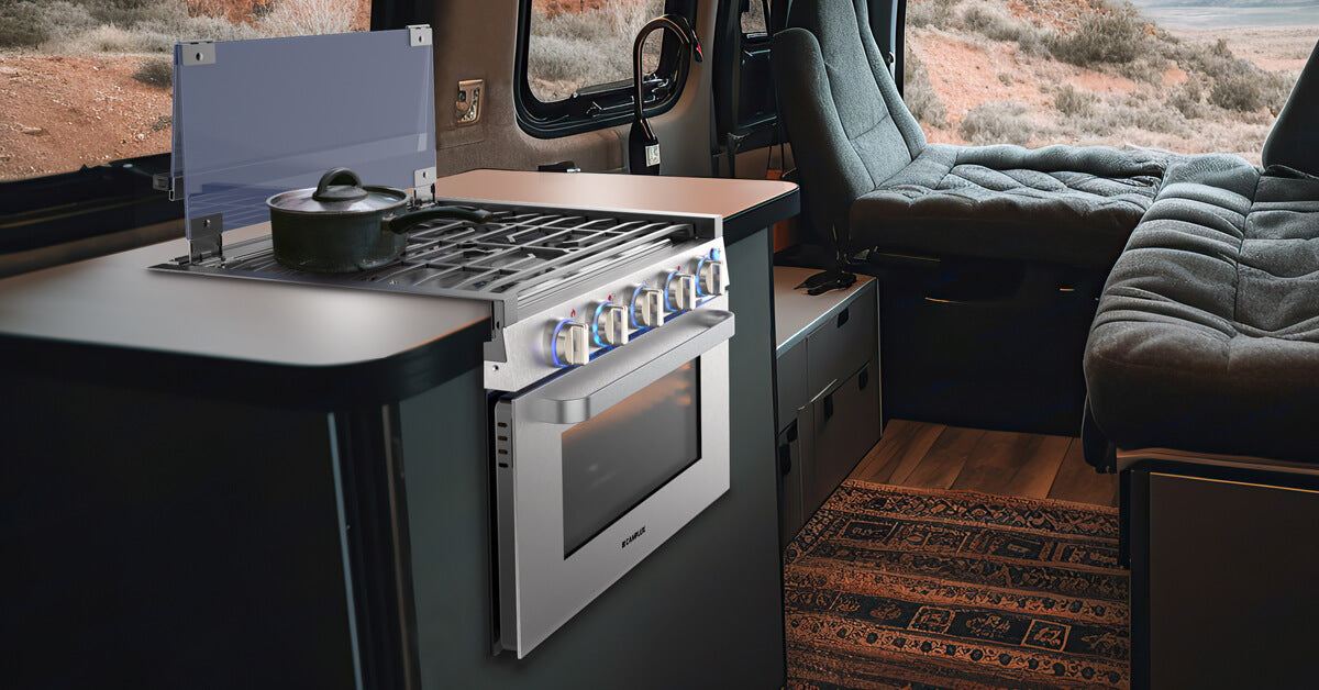 Complete your RV kitchen by exploring our innovative RV Tankless Water Heaters for hot water on demand, powerful RV Gas Ranges for expanded cooking possibilities, and stylish RV Range Hoods for a cleaner, more comfortable cooking environment.