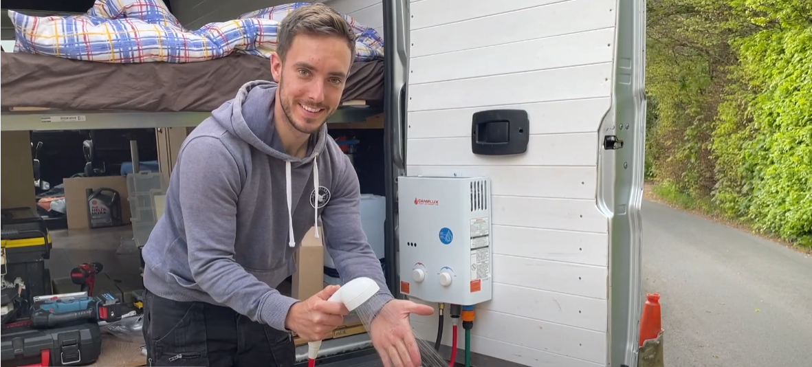 Wo immer Sie eine LPG-Flasche mitnehmen können, können Sie das Camper Kit mitnehmen. Es ist der weltweit kleinste Warmwasserbereiter seiner Klasse. Und der Genuss einer Außendusche ist so einfach wie das Umlegen eines Schalters.