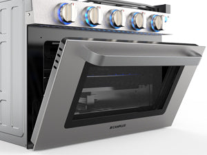 This range of RVs is a budget-friendly option, specifically designed for pop-up campers or RVs with limited space. If you're unable to accommodate a full-sized model, this economical version is the ideal solution. It offers the same oven and stovetop features, including 3 burners, illuminated temperature controls, and an optional range hood. Powered by propane gas, it has a 35-liter oven capacity. The optional range hood comes with two mechanical switches, a charcoal filter, and an LED lamp.